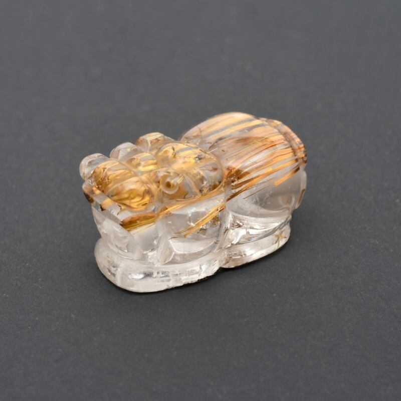 【美しいブロンズ針の艶が豊かさを象徴☆】1点物 ゴールド タイガールチル クォーツ 貔貅 ヒキュウ 【GHHKU2】3g 蓄財 金運祈願 運気アップ 財運 商売繫盛 昇運 お守り ご褒美 パーツ 貫通穴あり 京海堂 | 京海堂