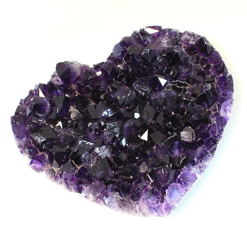 アメジスト原石 多くの芸能人が玄関に置く 愛の守護石 ハート型 一点物 絆を深め、愛を育む力一点物 2月誕生石「誠実」「心の平和」「高貴」「真実の愛」675g GHG5 専用台座付 贈り物にも最適サイズ ギフト 京海堂 | 京海堂