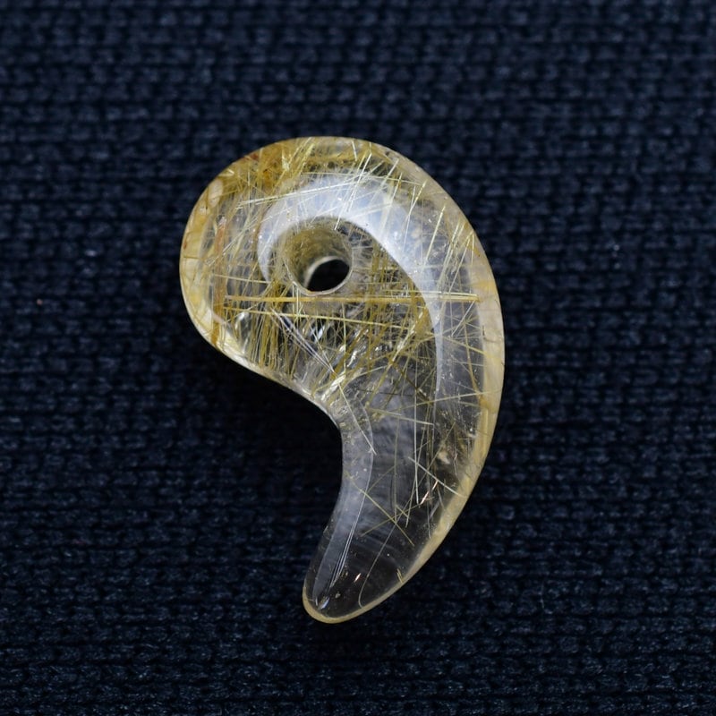 【美しく繊細な金針☆】人気 勾玉 ゴールド ルチル クォーツ 一点物【KMr61】お守り効果 力が宿る パワーストーン 勝負運・金運・目標達成 プレゼント 守護石 京海堂