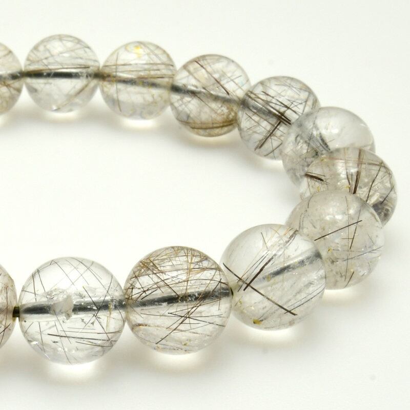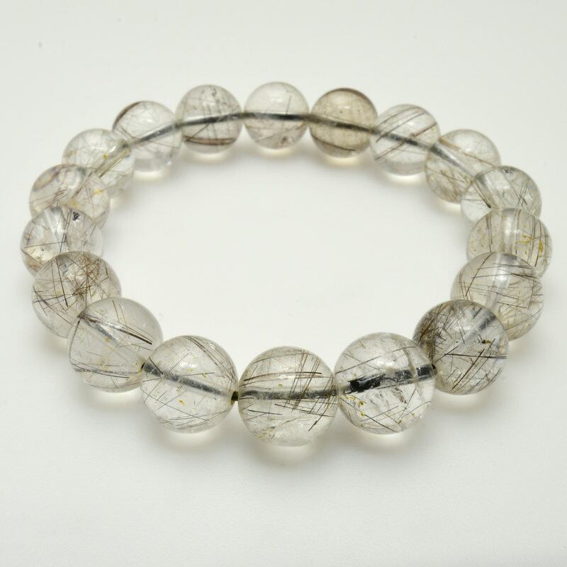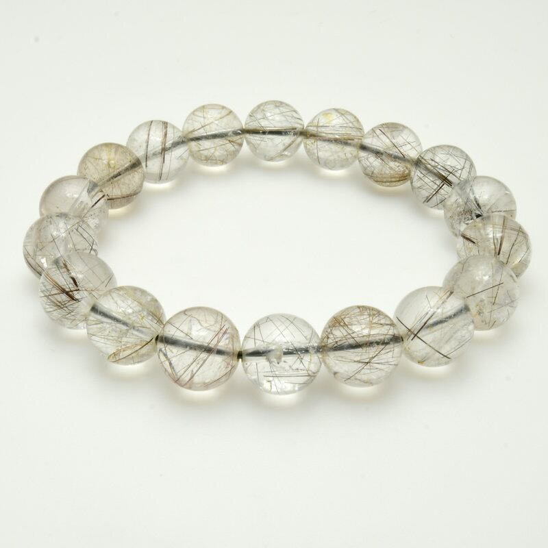 【輝く銀針水晶ブレスレット】11mm シルバールチルクォーツブレスレット 艶感 一点物【GHB57】 浄化 ビジネス運 精神の安定 チャンスを見極める 仕事運 安定した収入 お守り 高品質 プレゼント 贈り物 水晶 35g 浄化発送 メンズ レディース ギフト 京海堂