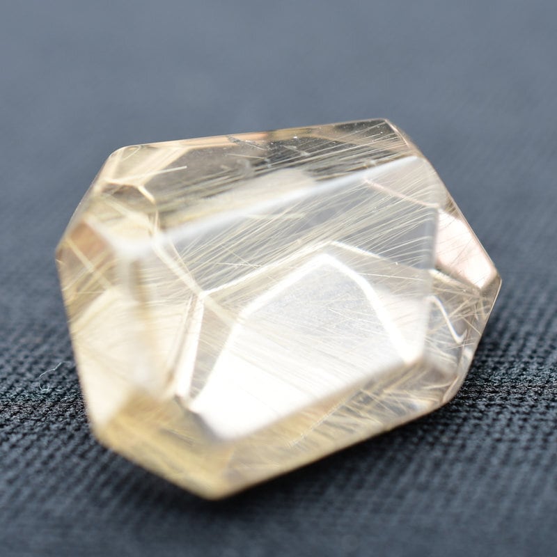 透明度の高いスモーキーなクォーツの中に繊細な金針が輝く、