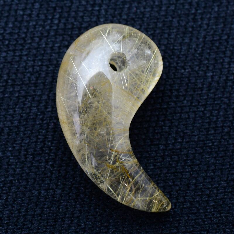 【うる艶勾玉に優しく広がる金の針が美しい】人気 勾玉 ゴールド ルチル クォーツ 一点物【KMr75】お守り効果 力が宿る パワーストーン 勝負運・金運・目標達成 プレゼント 守護石 京海堂 | 京海堂