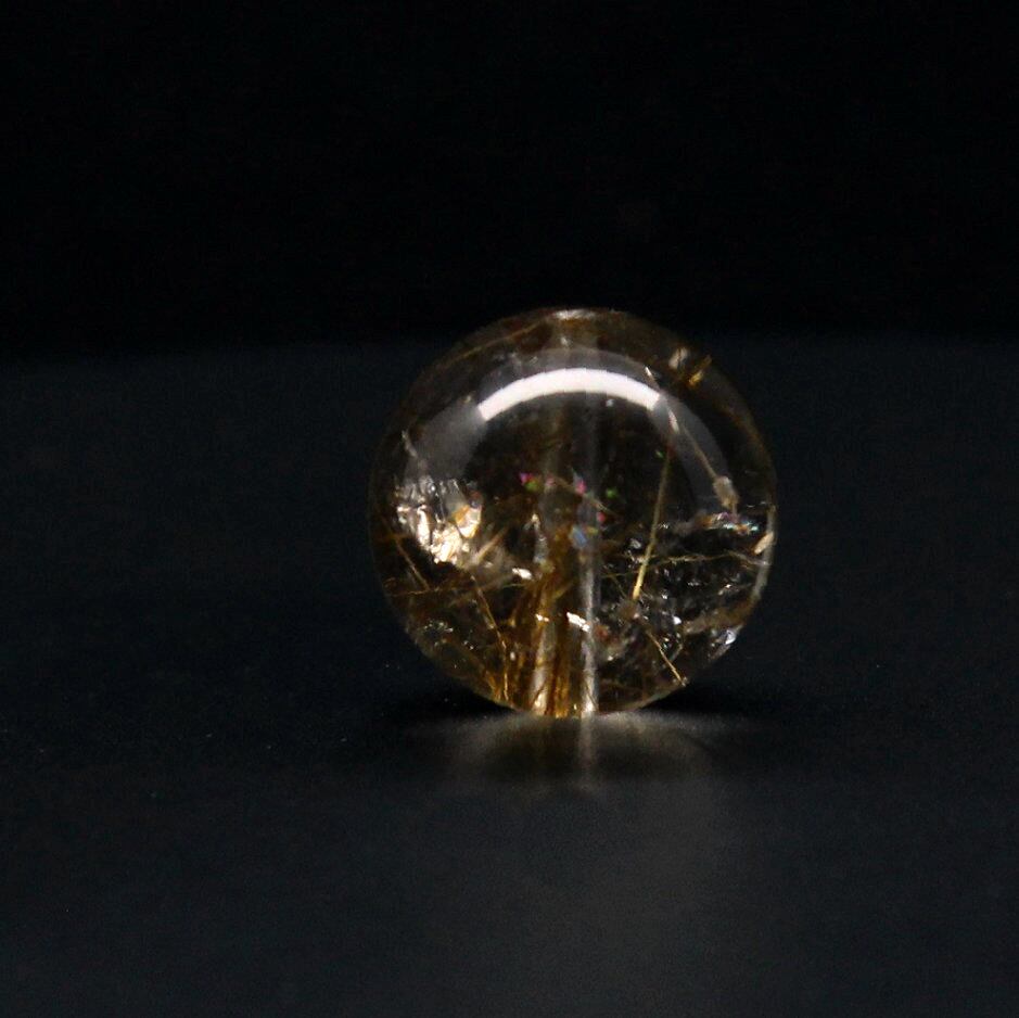14mmの大粒 透明感あるクォーツの中にシラー(虹)が入り、金針も美しくエレガントに輝く一点物天然石