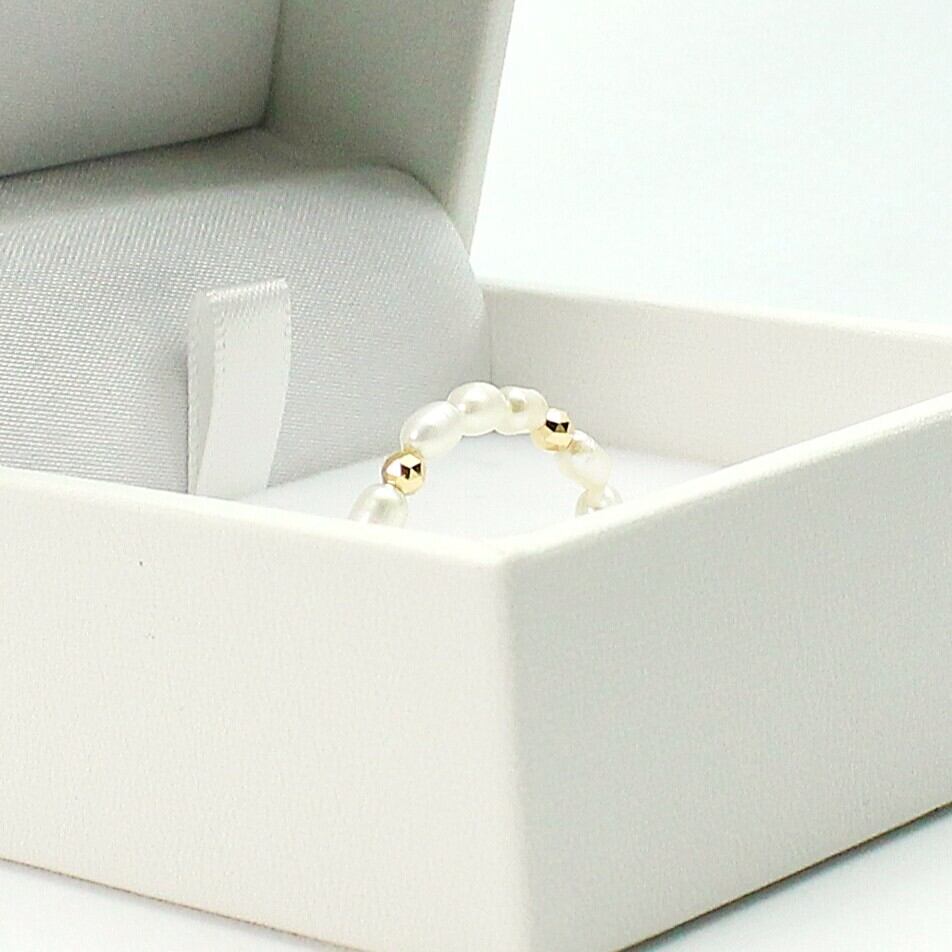 上品な輝きの淡水パールと、日本製K18ゴールドパーツを組み合わせた大人のためのリング