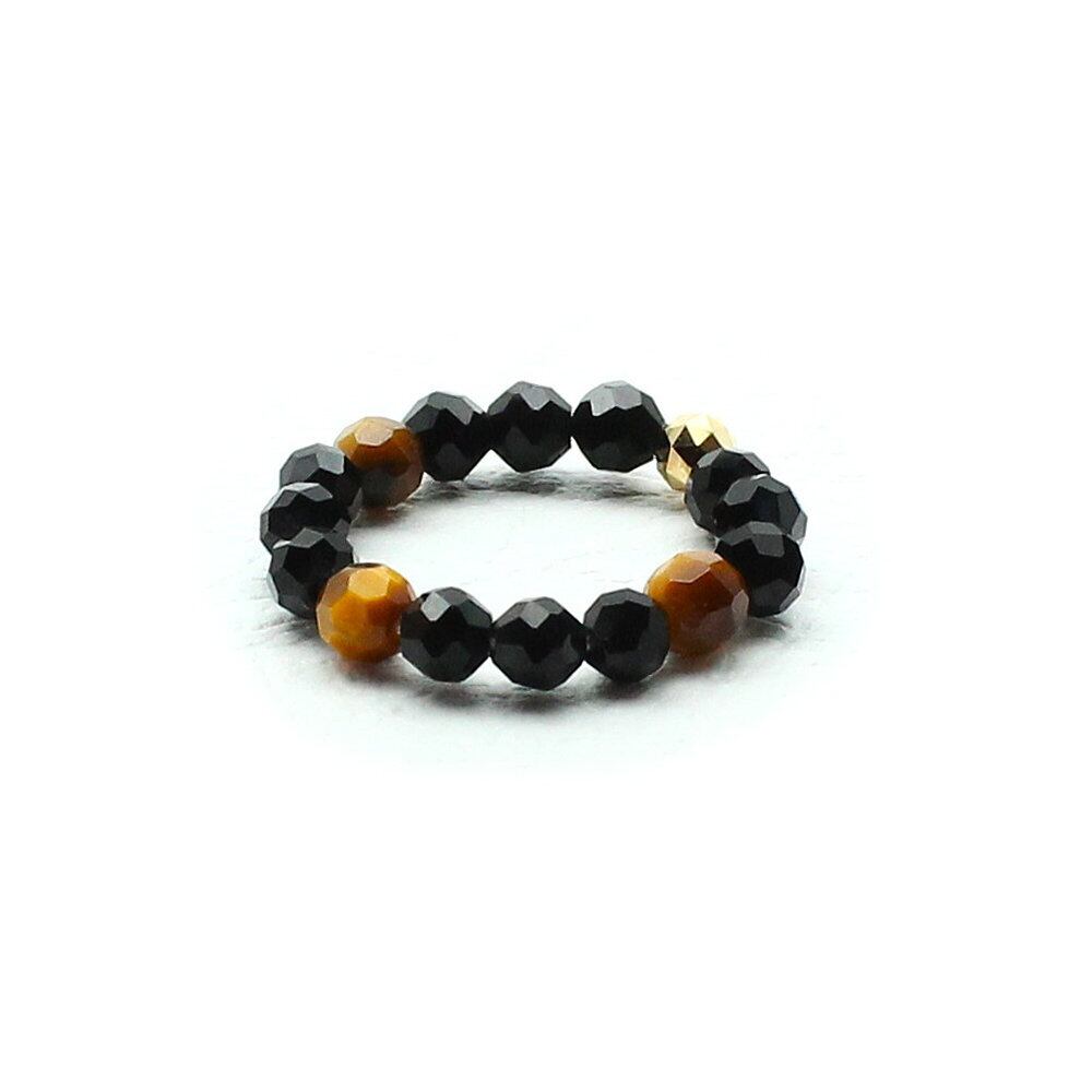 K18ゴールド 天然石オニキス&タイガーアイ リング 4mm 日本製パーツ ゴムリング 伸縮 指輪 レディース メンズ 金運 黒 ブラック ギフト【ブラック&GOLDが上品に演出】 ghri4 【当社オリジナルモデル】 京海堂 | 京海堂