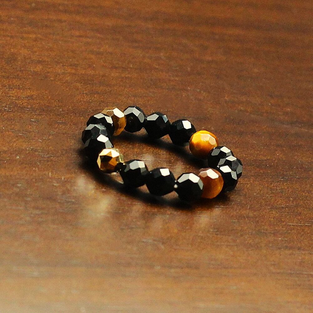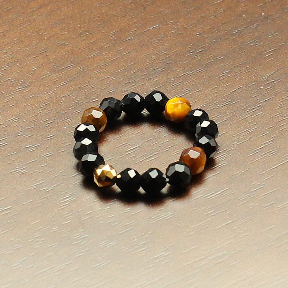 【当社オリジナル】4mm K18ゴールド × オニキス × タイガーアイ リング
