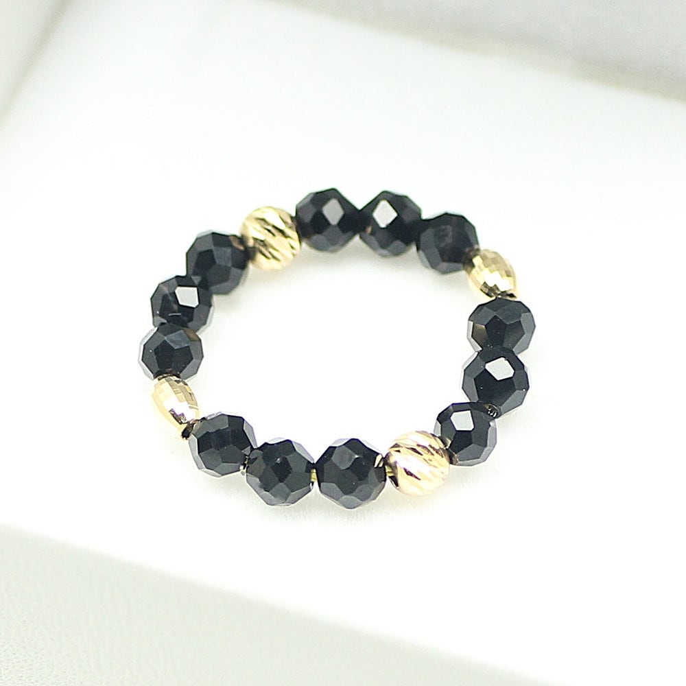 K18ゴールド 天然石オニキス リング 3mm 日本製パーツ ゴムリング 伸縮 指輪 レディース メンズ 金運 黒 ブラック ギフト【ブラック&GOLDが上品に演出】 ghri1 【当社オリジナルモデル】「金を身につける」金運・幸運 ブラック ビーズ 京海堂 | 京海堂