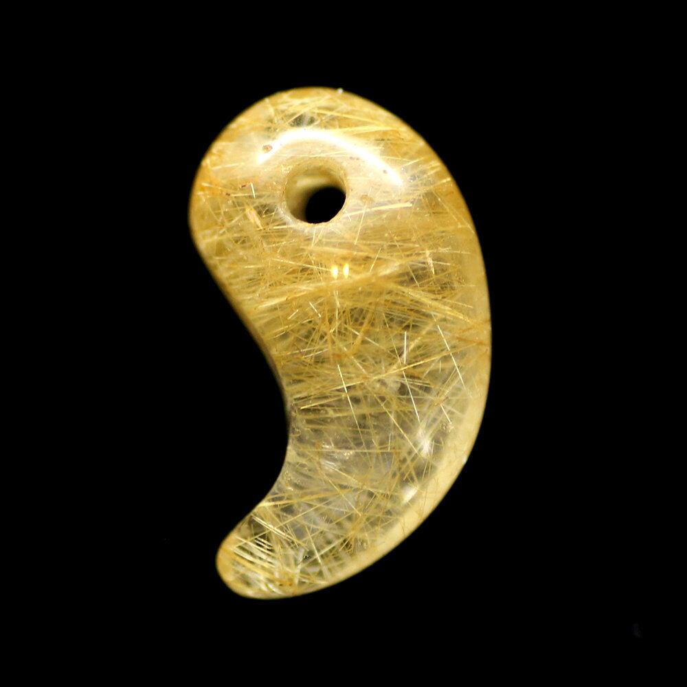 ゴールドタイチンルチルクォーツを使用した勾玉(まがたま)です。