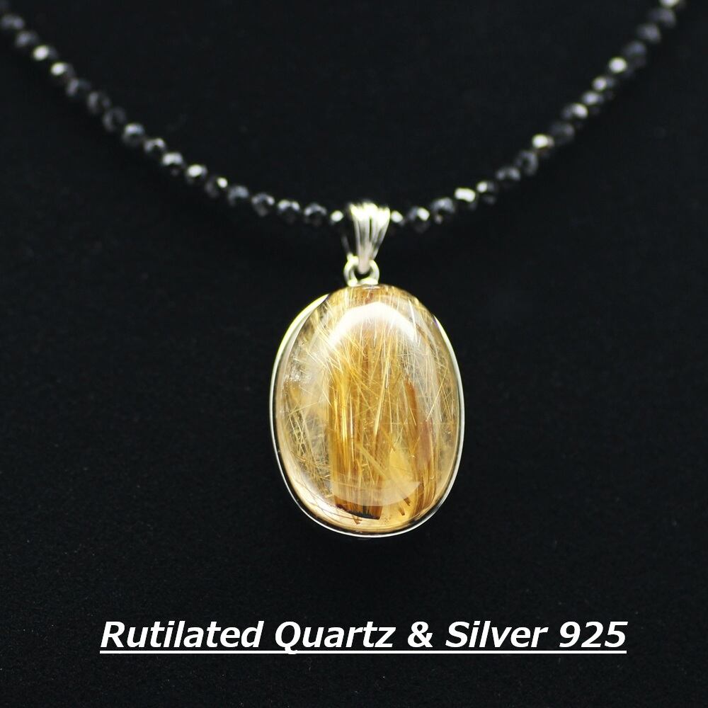 黄金色の針が美しく輝く天然ルチルクォーツを使用したネックレストップ。