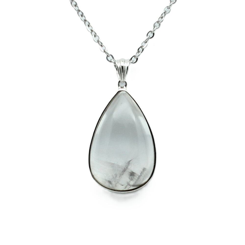 天然プラチナルチルクォーツを使用した上品で使いやすいティアドロップ型ネックレス