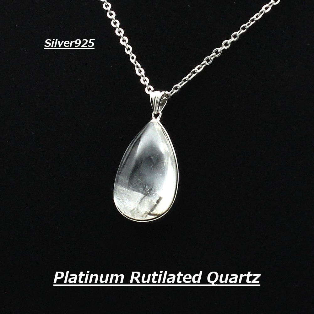 【送料無料・ラッピング無料】プラチナルチルクォーツ ネックレス 天然石 トップ シルバー925 チェーン付き パワーストーン 金運 仕事運 メンズ レディース【GHRPNT5】