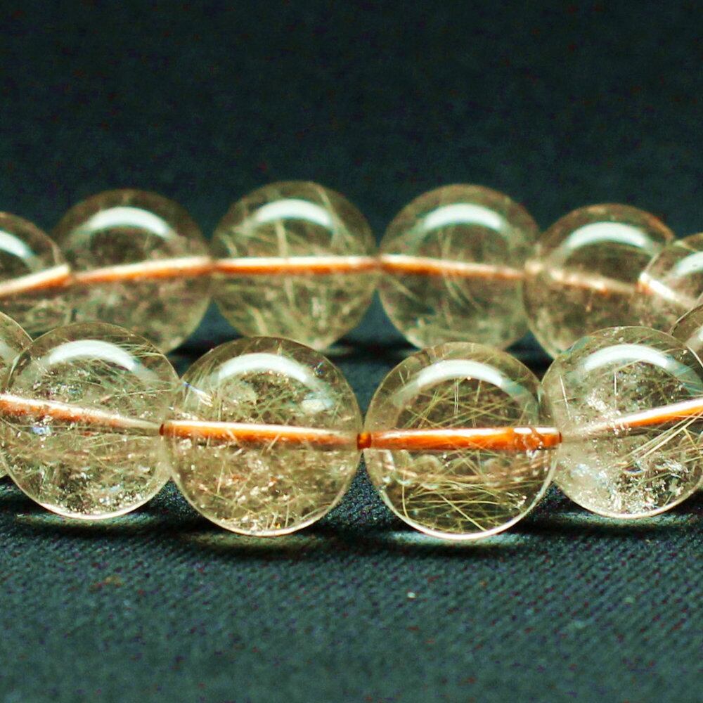 14mmと大きめの粒に繊細に光るルチルの針が美しい一点
