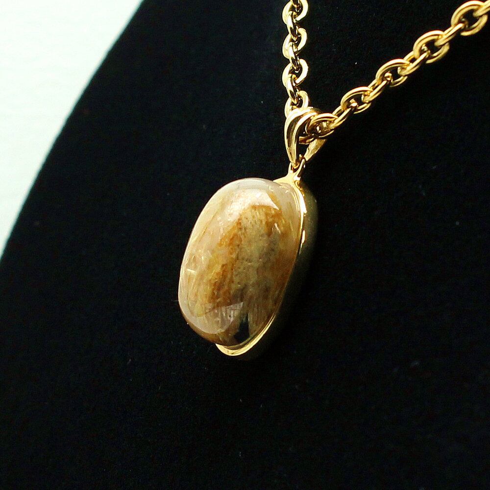 水晶の中に黄金色のルチル(針状結晶)を内包した人気天然石