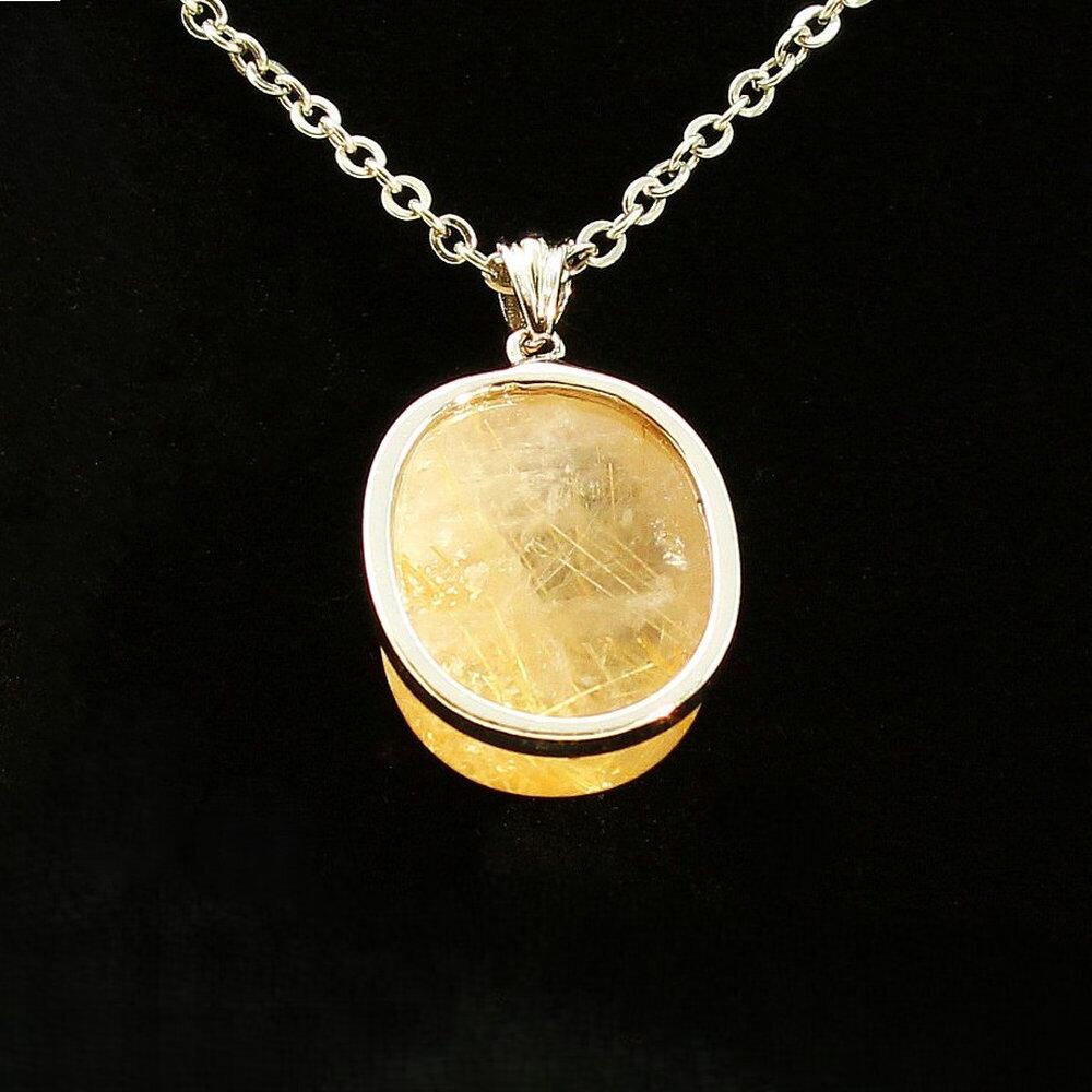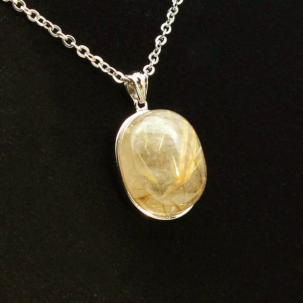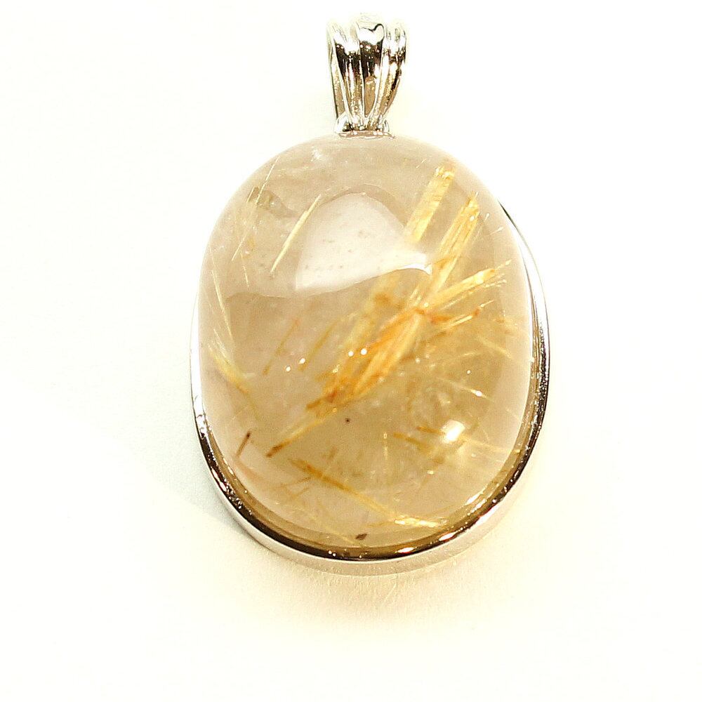 水晶の中に黄金色のルチル(針状結晶)を内包した人気天然石