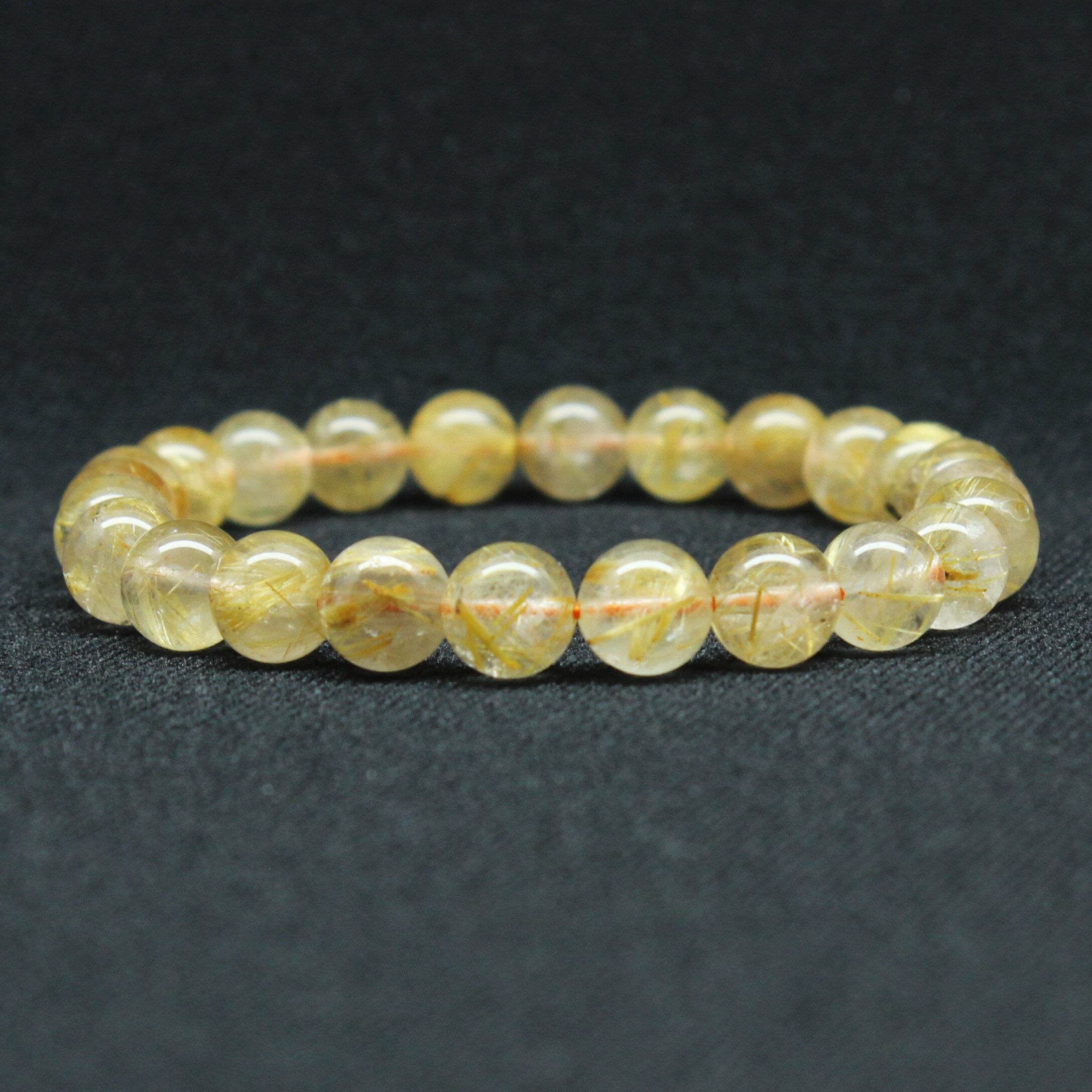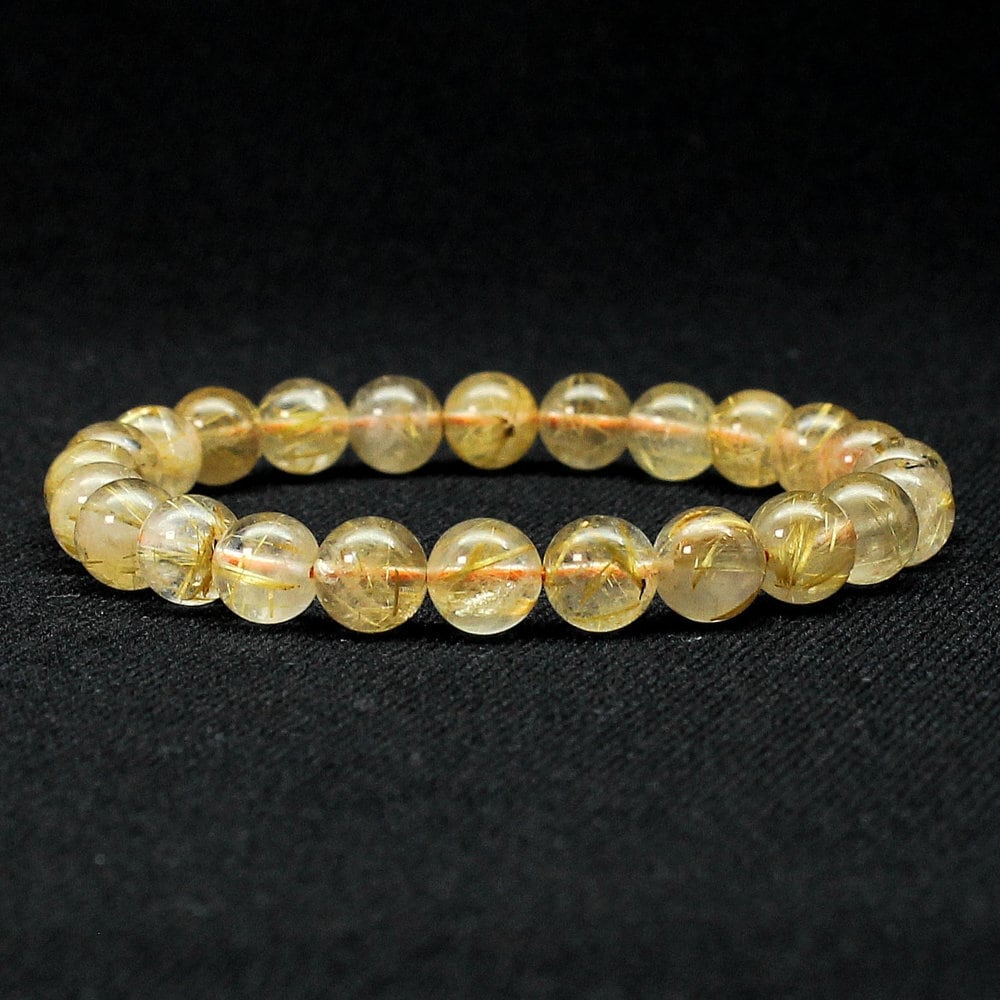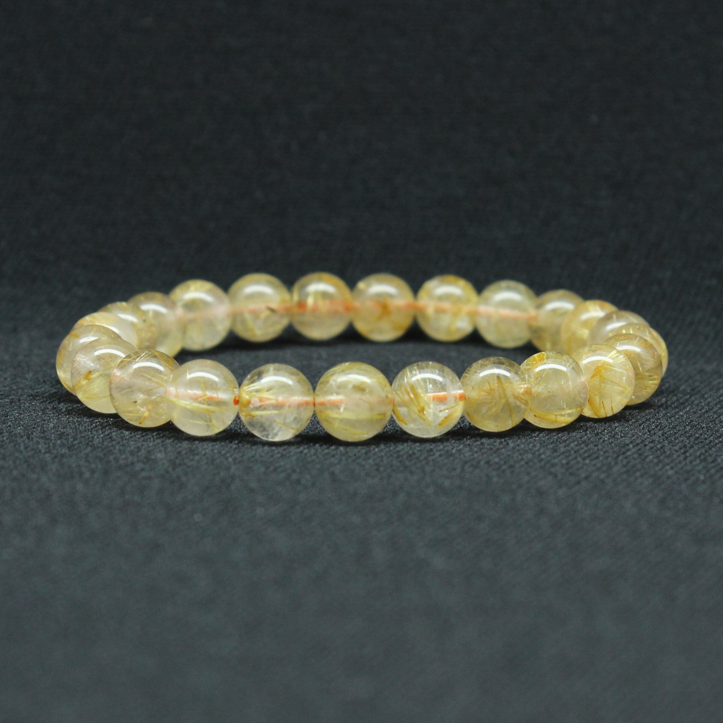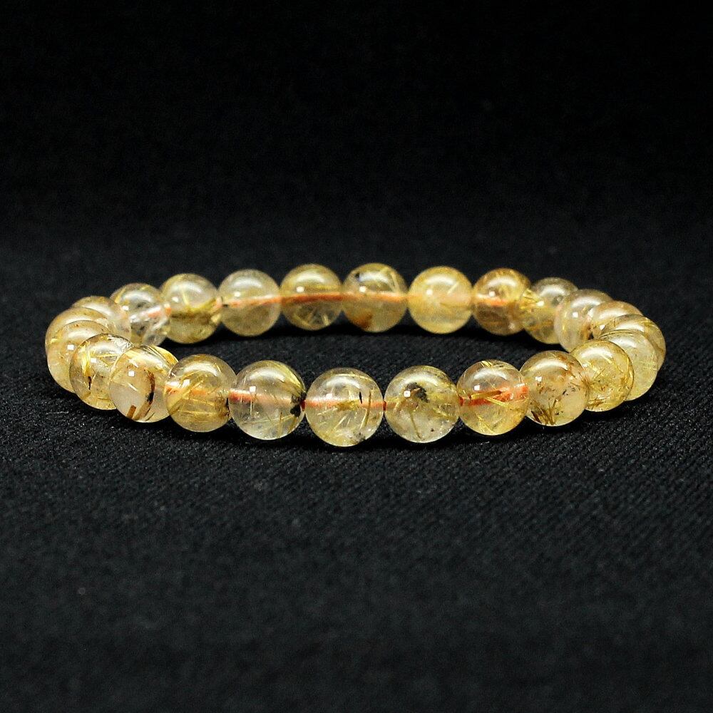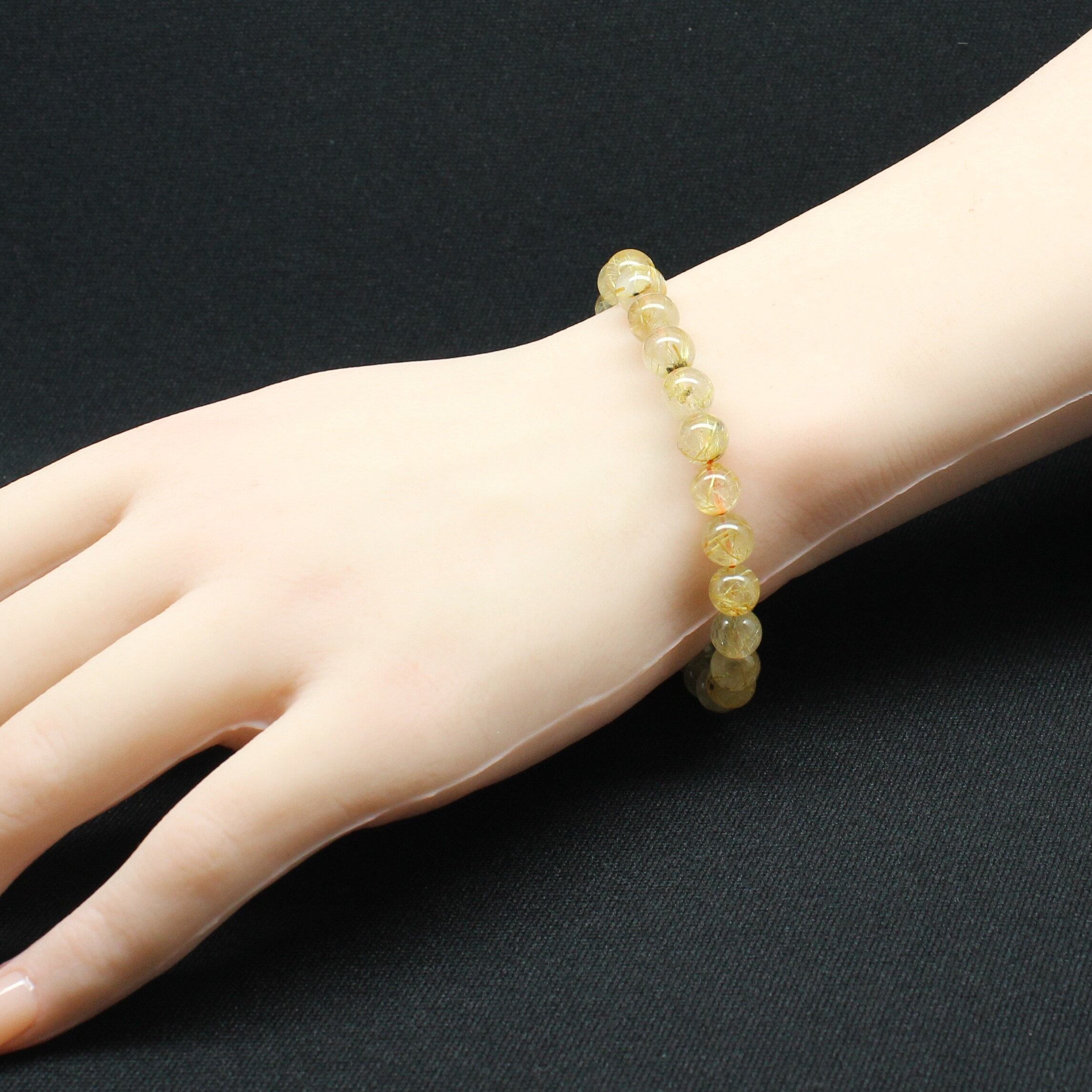 透明感のある水晶の中に、淡いゴールドのルチル(針状結晶)が繊細に舞うブレスレット。