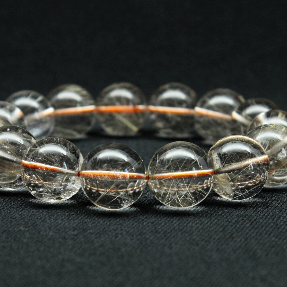 透明感のある水晶の中に、繊細なルチル(金針)が繊細に交差するルチルクォーツブレスレット。