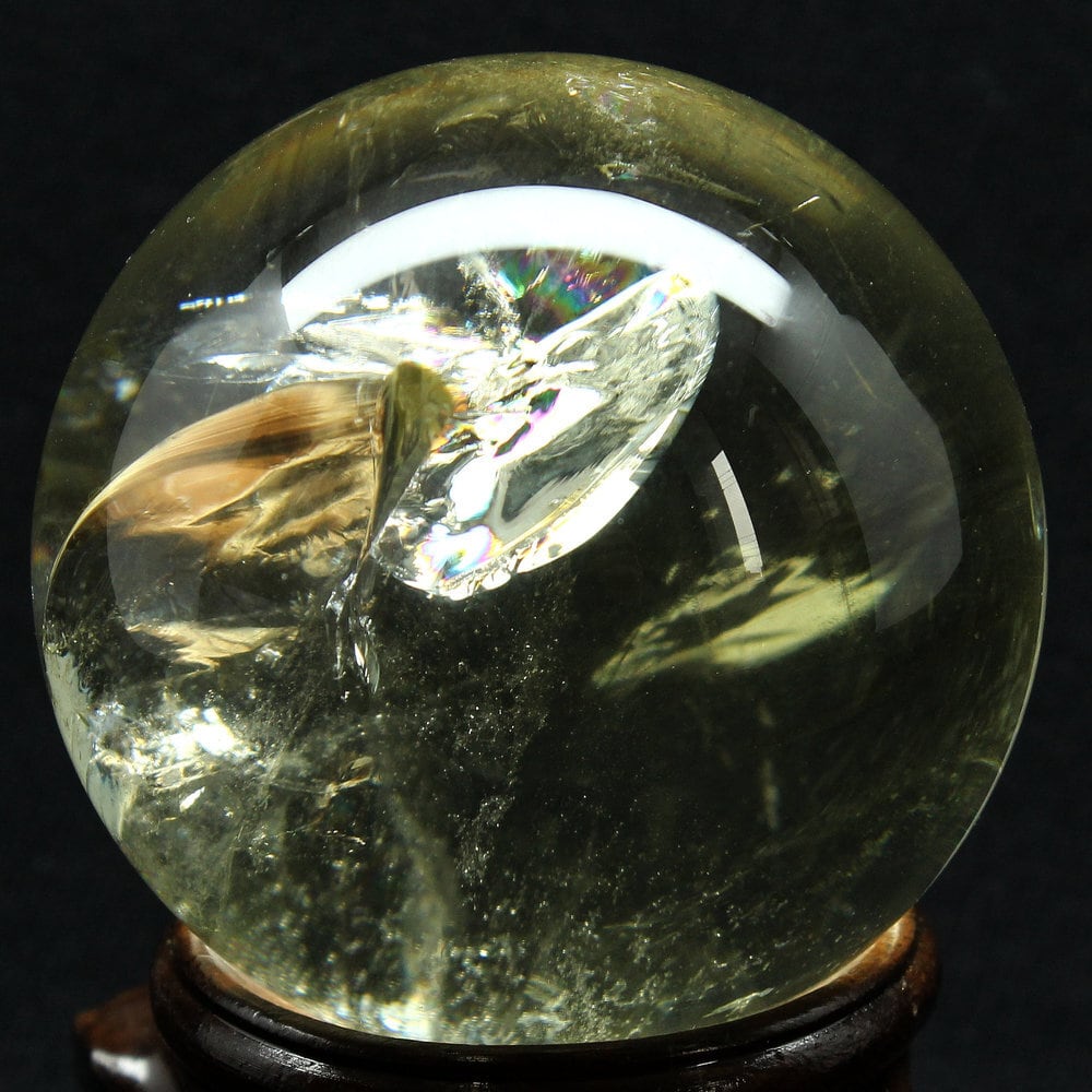 【太陽のエネルギーを宿す黄金の天然石】虹入りシトリン スフィア 約60mm 299g GHSU7 台座付き 丸玉 天然石 パワーストーン 金運 繁栄 商売繁盛 成功 癒し 浄化 インテリア 置物 プレゼント ギフト 京海堂