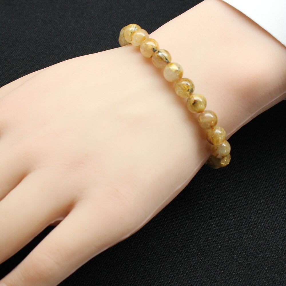 【力強く広がる太陽針】ゴールドルチルクォーツ ブレスレット8mm GHB132・16g 太陽放射ルチル 財運上昇、ビジネス運向上、邪気払い、集中力向上、前向きな活力 プレゼント 贈り物 水晶 浄化発送 ギフト 京海堂