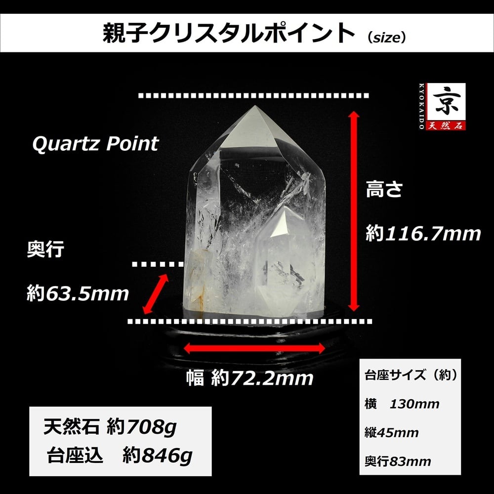 レアな親子(水晶)クリスタルポイント【透明度抜群!シラー入芸術品】一点物 原石 708g ghgp2 台座付 クラスター水晶 成長 繁栄 人との絆 鑑賞天然石 邪気払い 部屋の浄化 お守り 贈り物 ギフト 京海堂