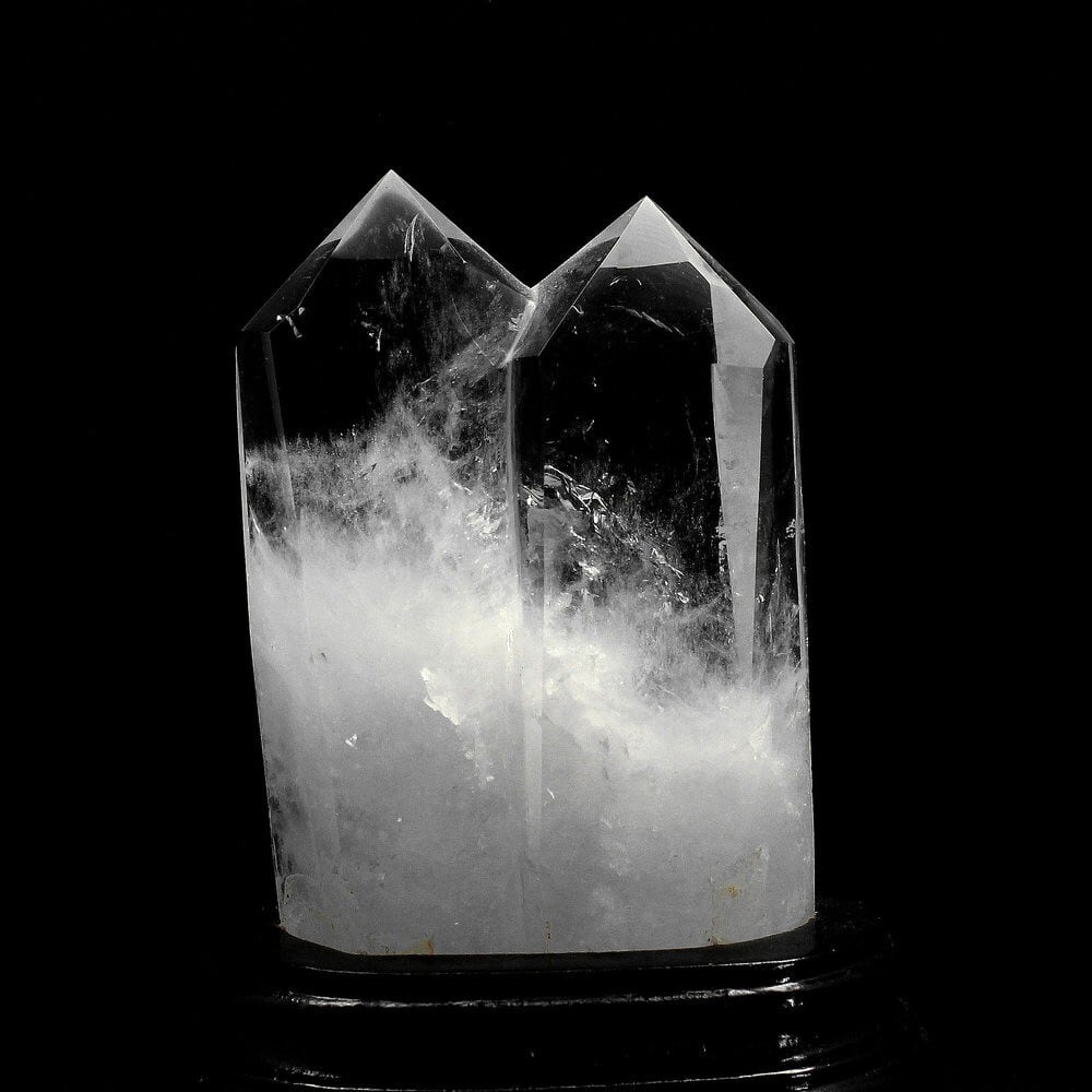 透明度の高い天然水晶が二つ並ぶように結晶した希少な【夫婦クリスタルポイント】