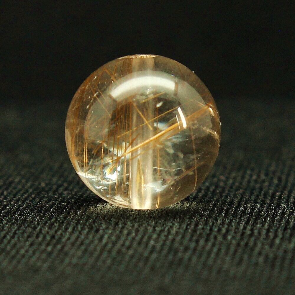 ナチュラルで繊細な金針が美しい ゴールドルチルクォーツ 約14ミリ【GHTU34 4g】ハンドメイド 交換用ゴム付&巾着1枚 【金運ビジネス運】 京海堂