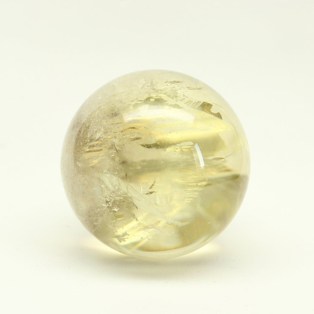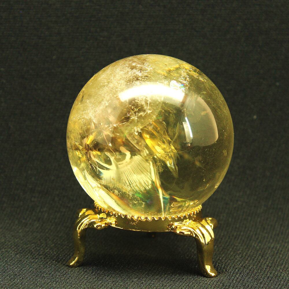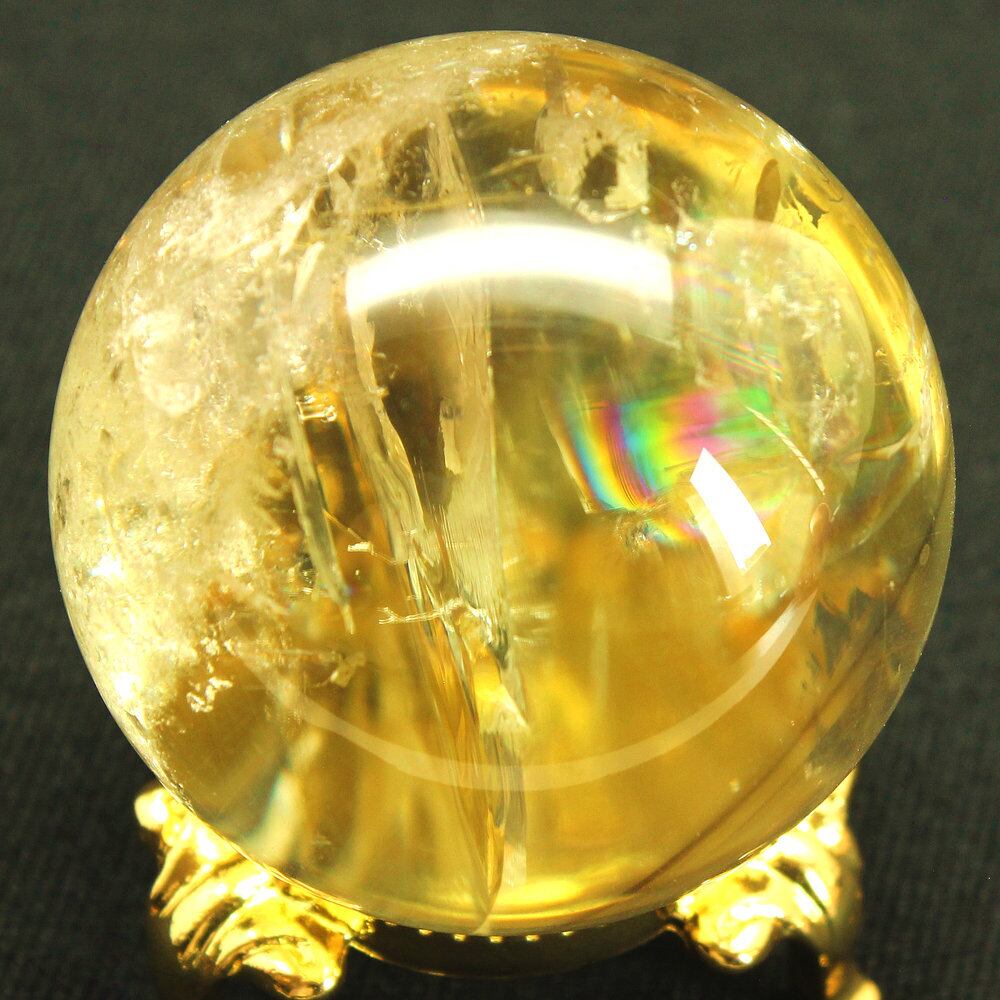 澄んだ神秘的なイエローカラー 虹入りシトリン スフィア 約45mm 124g GHSU3 台座付き 天然石 パワーストーン 金運 商売繁盛 癒し 京海堂