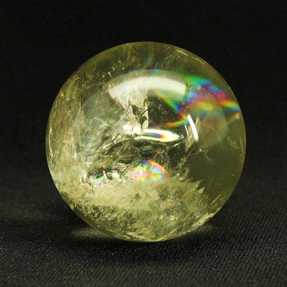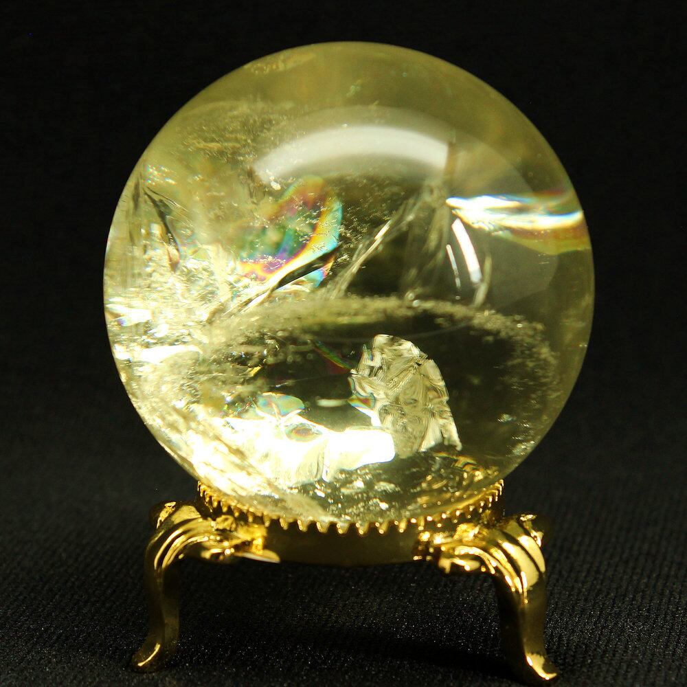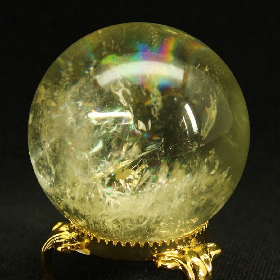 鮮やかな虹の輝きが幻想的 虹入りシトリン スフィア 約46mm 134g GHSU6 台座付き 天然石 パワーストーン 金運 商売繁盛 癒し 京海堂