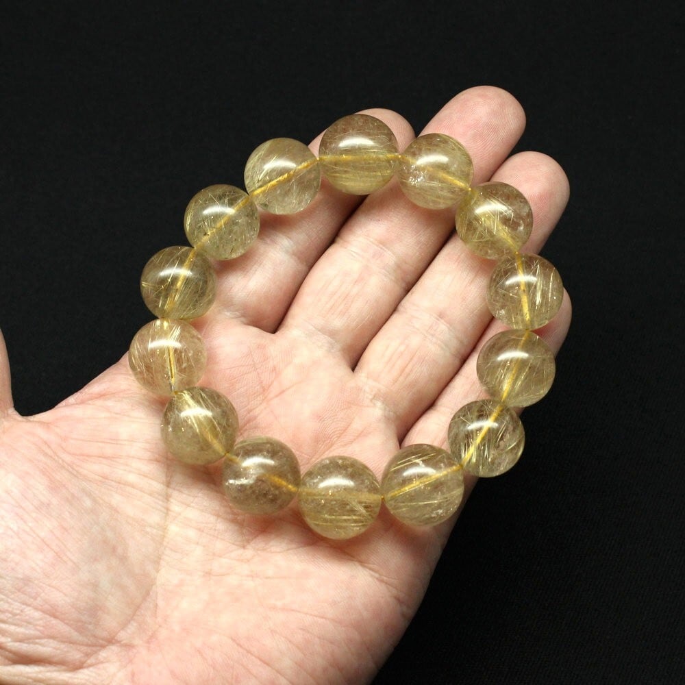 17mm大玉ルチルブレスレット GHB140 天然石 ゴールドタイチンルチル 金針水晶高品質メンズレディース 金運爆上 京海堂