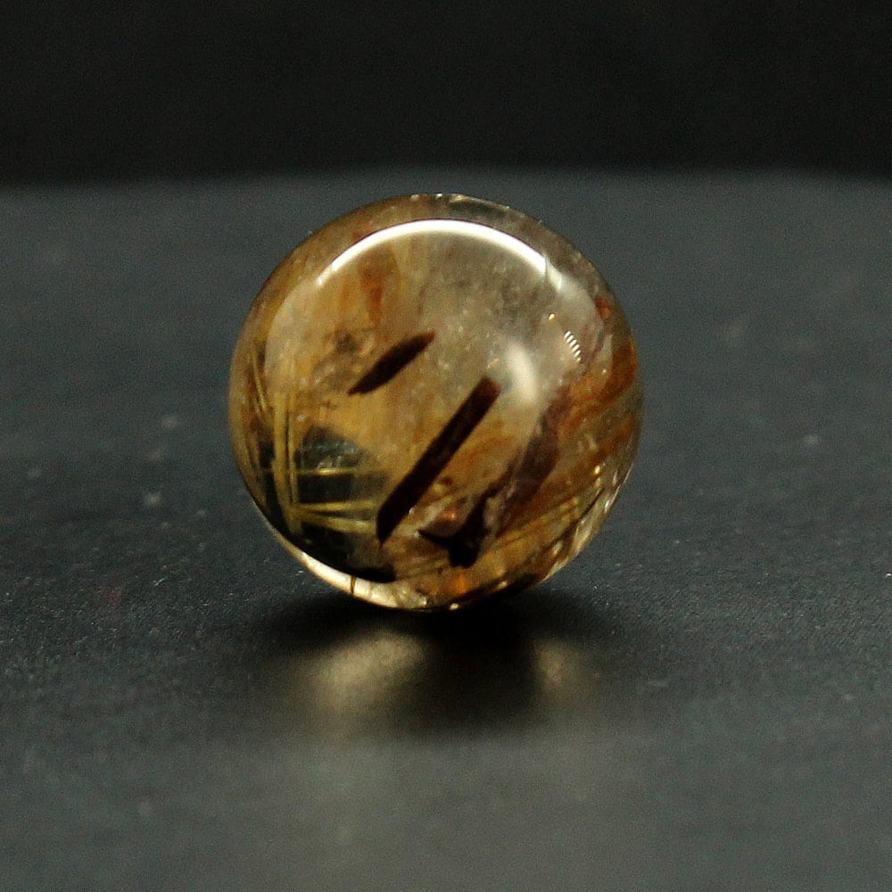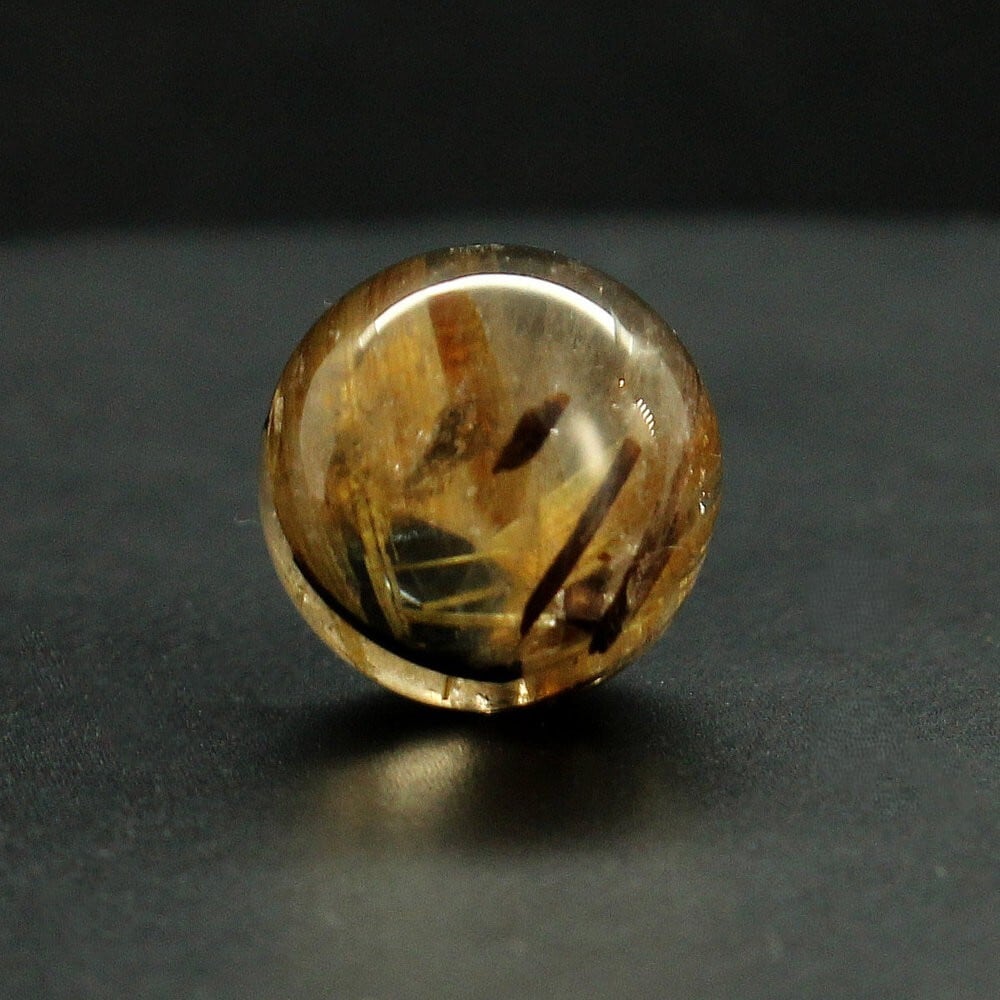 太めのルチルがしっかりと確認でき、深みのある色合いが落ち着いた存在感を演出します。