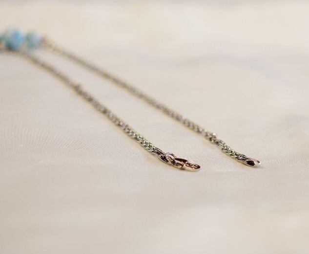 そんなラリマーと組み合わせたのが、お肌に優しいと云われているステンレス素材のフィガロチェーンになります。