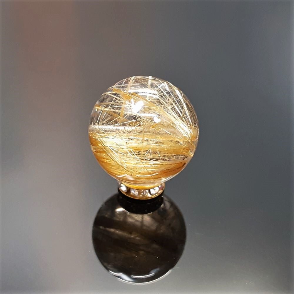 【最高峰】現品一点物 1粒売り ゴールドルチル クォーツ 金針水晶 16ミリ SPR23 ハンドメイド 天然石 パワーストーン 開運 最強金運 ビーズ 贈り物 ギフト 京海堂