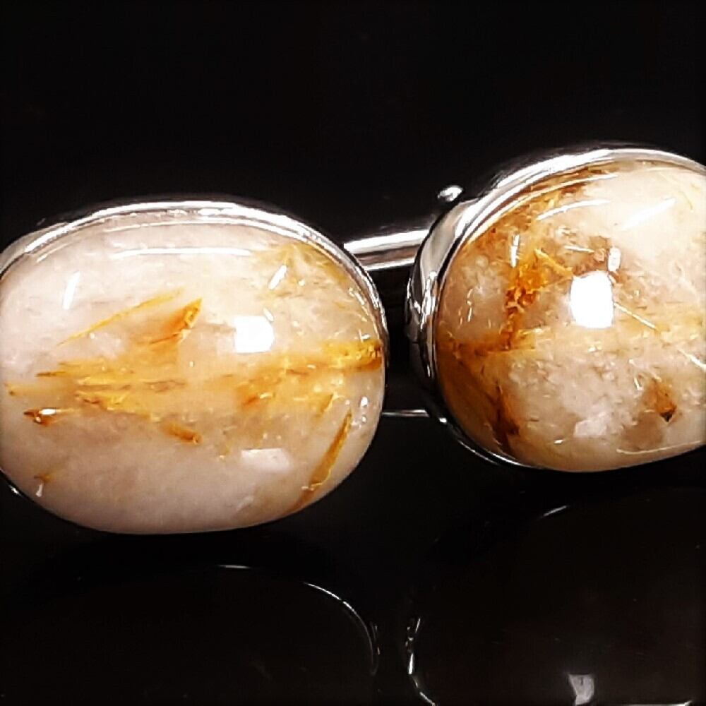 ☆ルチルクォーツで作ったカフスボタンは、京海堂のオリジナルアイテムです!!