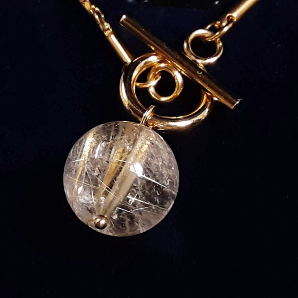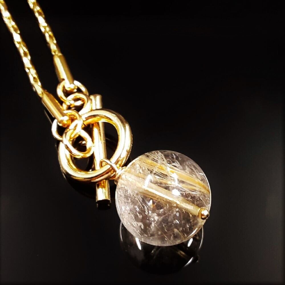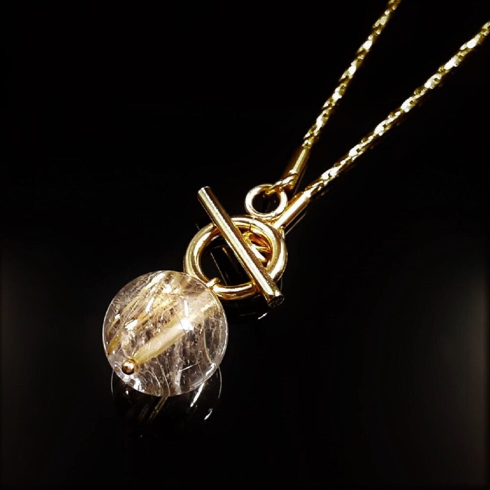 ☆1粒の神秘的なルチルを中心に、人気のマンテルパーツとステンレスチェーンを組み合わせてネックレスを作りました。