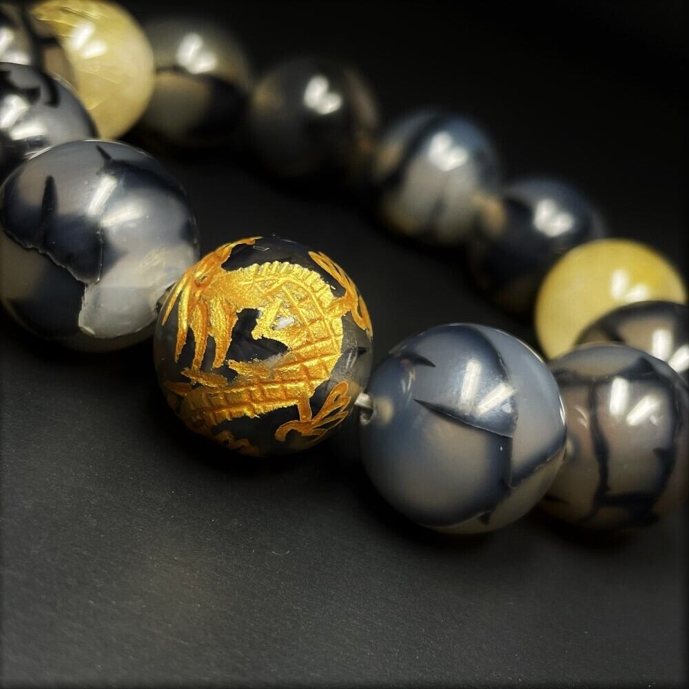 ・金彫皇帝龍ドラゴンアゲート 16ミリ