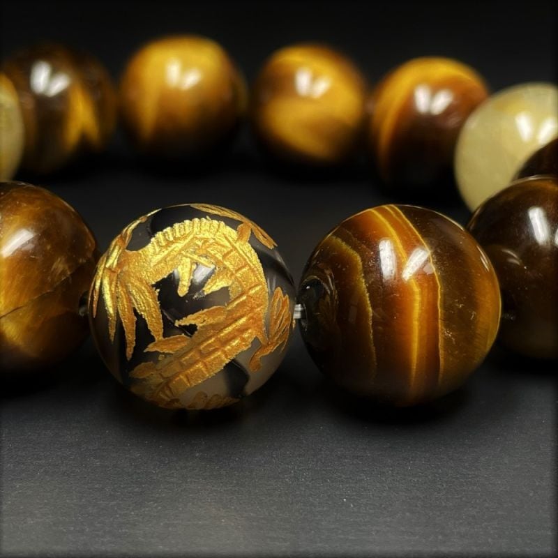 【成功をサポートする】風水神 皇帝龍 ドラゴンアゲート タイガーアイ ゴールドルチル ブレスレット 16ミリ 天然石 数珠 最強金運 パワーストーン 開運 ホワイトデー 卒業祝い 結婚記念日 プレゼント ギフト 贈り物 ryub3 | 京海堂