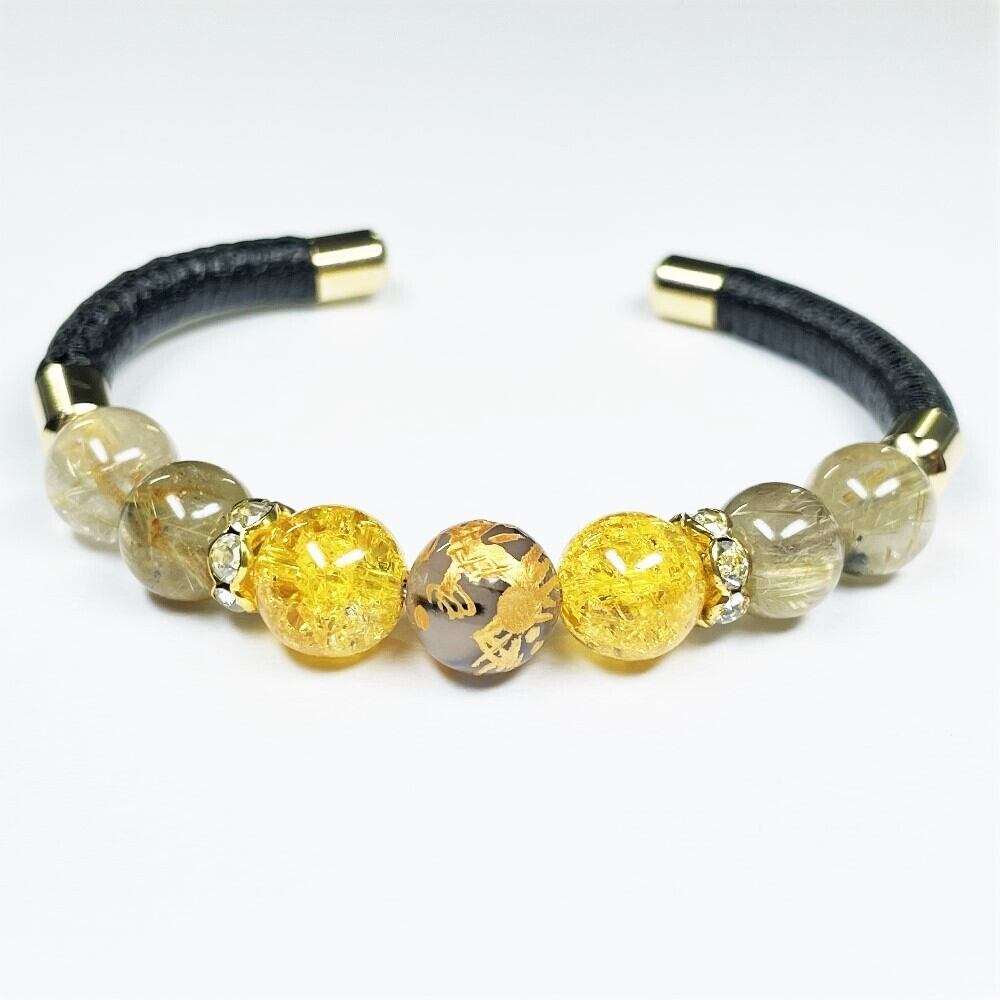 【大人を極める!】金彫皇帝龍ドラゴンアゲート ゴールドルチル シトリンクラック ニューチューブ バングル 高級感抜群のフェイクレザー使用♪レディース・メンズOK ホワイトデー 卒業祝い 結婚記念日 NC1 | 京海堂