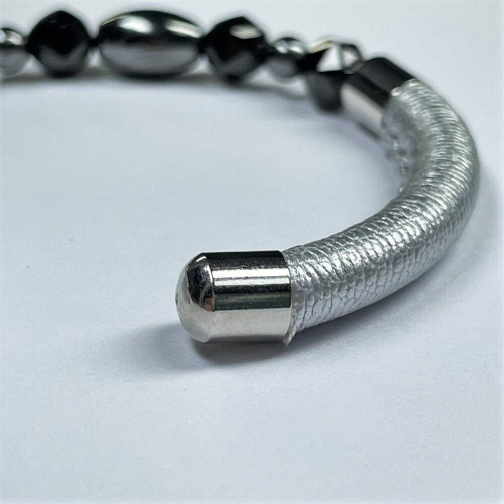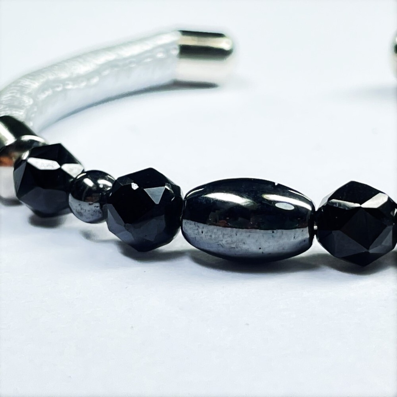 【スマートにお洒落を貫く】磁気ヘマタイト スターカットスピネル ニューチューブ バングル 高級感抜群のフェイクレザー使用♪レディース・メンズOK ホワイトデー 卒業祝い 結婚記念日 プレゼント 贈り物 ギフト NC4 | 京海堂