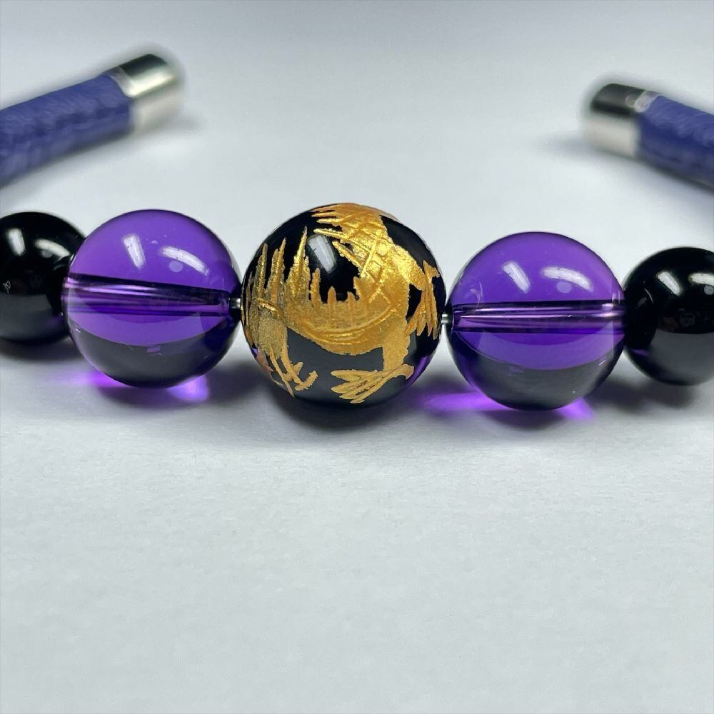 金彫皇帝龍オニキスに紫水晶とブラックオニキスを組み合わせた、風水的にもアリ、色合いも大人なアイテムです♪