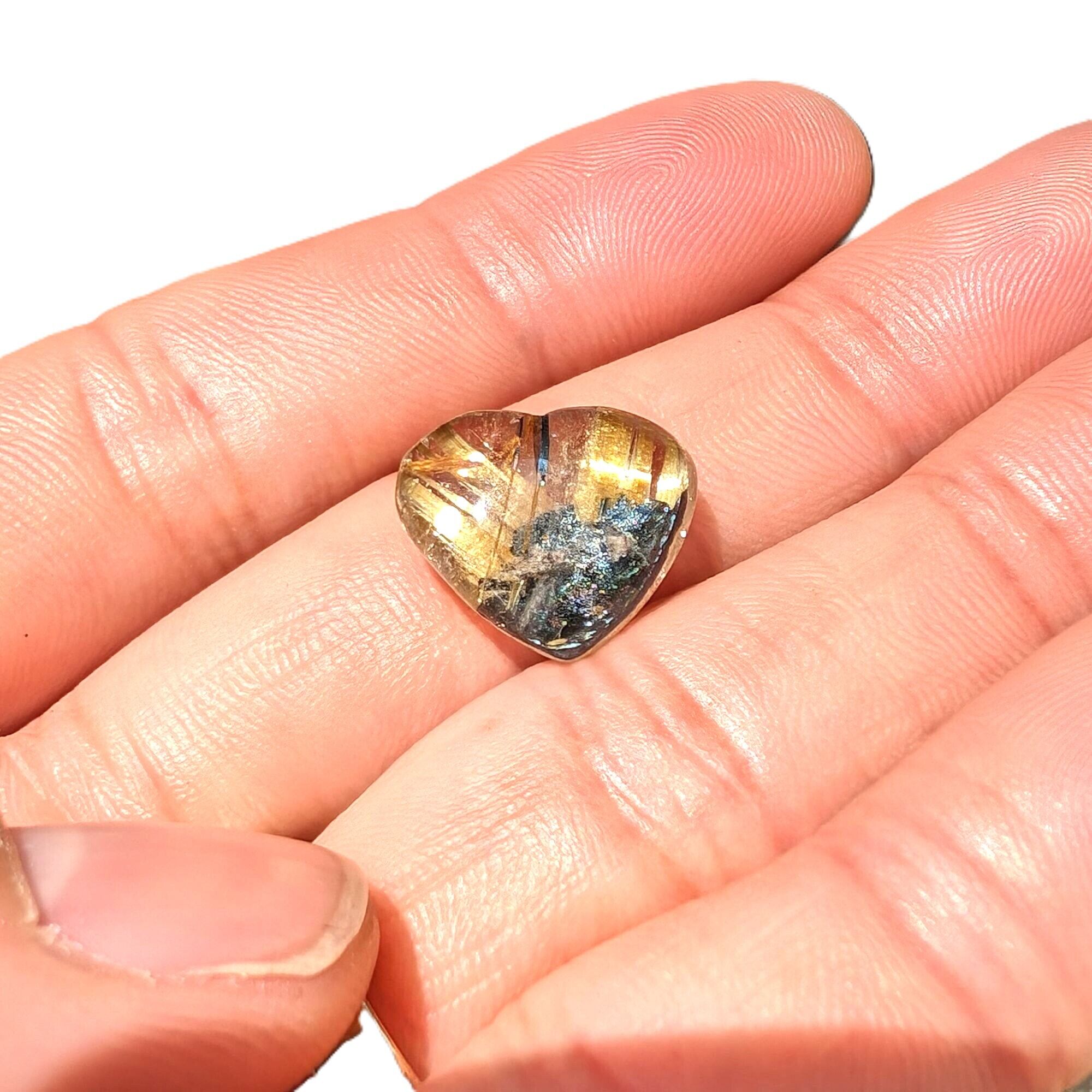 透明度抜群のクォーツの中に内包するヘマタイトから、V字に伸びるルチルがかなり魅力的です。また、ヘマタイトの影から虹の光が差し込んできますので、神秘のパワーを感じることができるでしょう^^